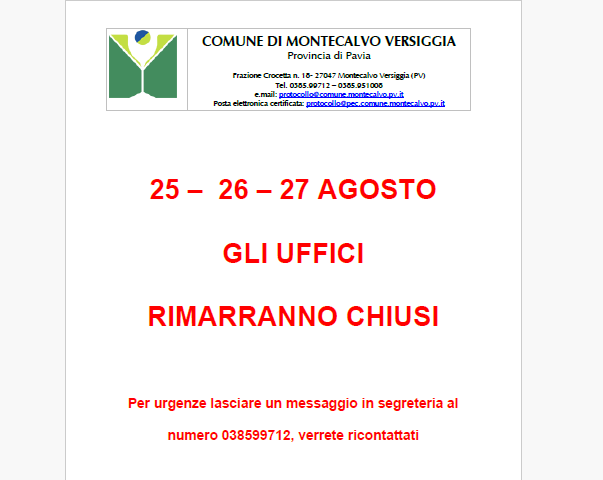 anagrafe@comune.montecalvo.pv.it protocollo@comune.montecalvo.pv.it |
